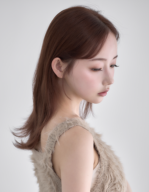 ピンクベージュを使用することで、ブリーチ履歴のある部分も褪色時に黄ばみが出にくくなり、まろやかな色味がキープできます。