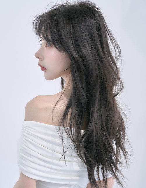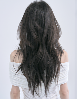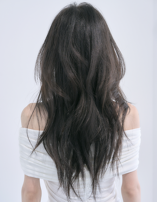 光に当たると透け感が出て、肌をワントーン明るく見せてくれるカラー。ダークトーンでも重く見えず、おしゃれを楽しめる仕上がり。毛先に行くにつれて少し明るくグラデーションにすることで、色持ちを良くしています。