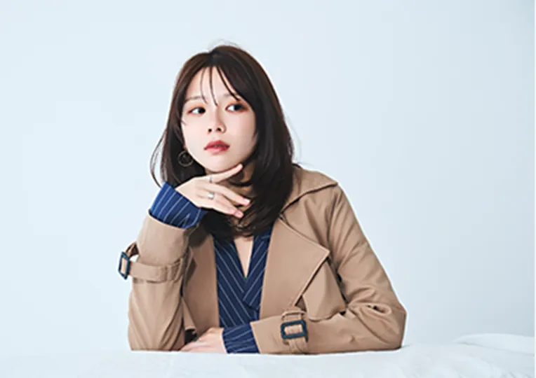 モデルの肌色に合わせ、赤味を抑えた透明感のあるベージュ系に仕上げる。
