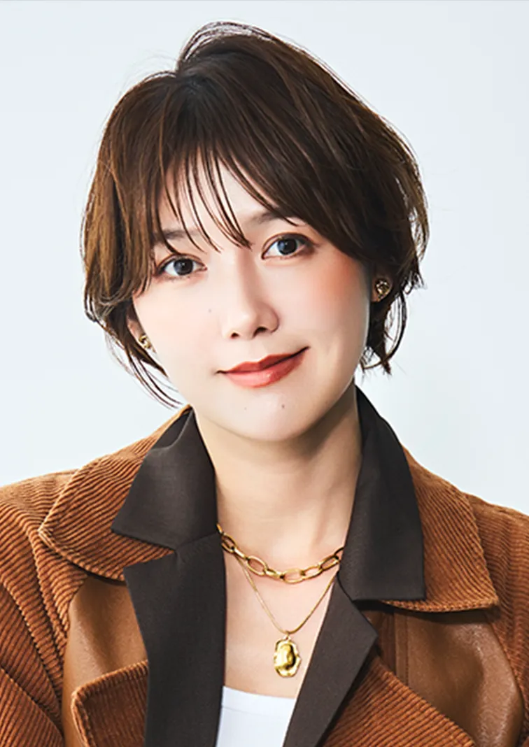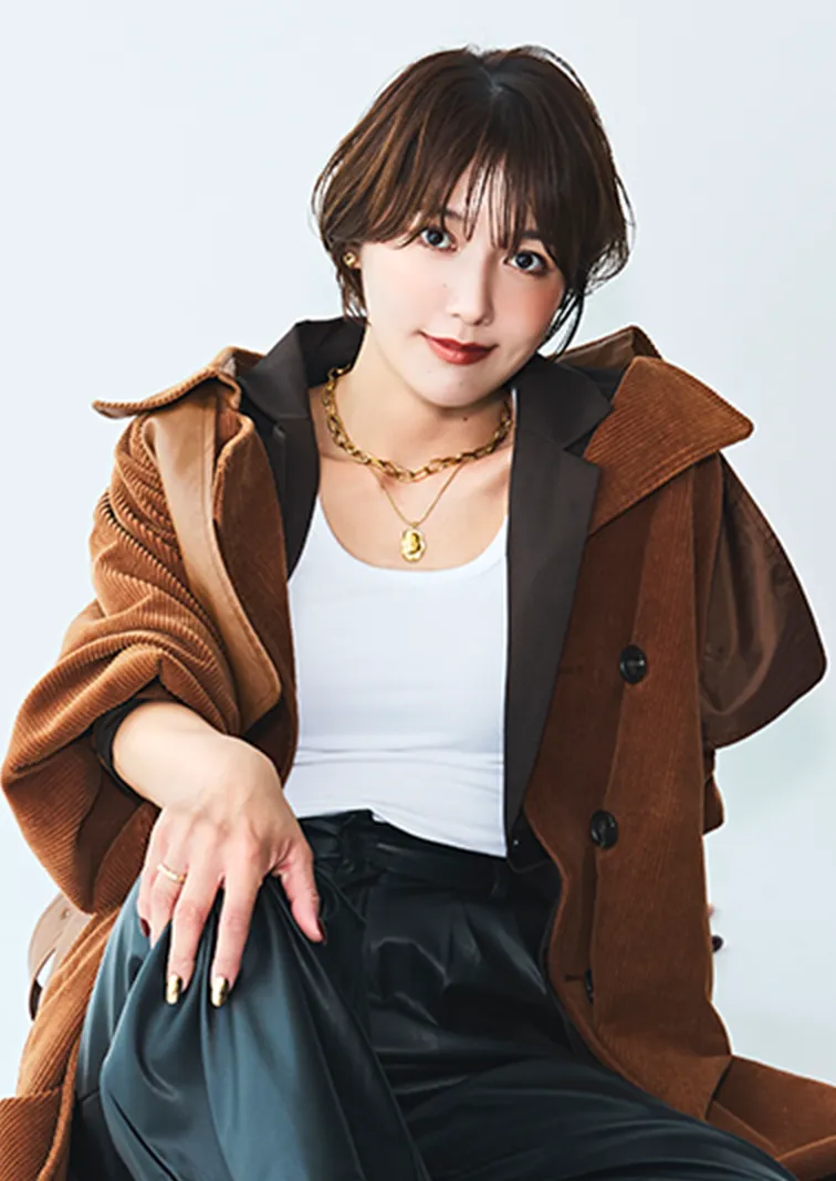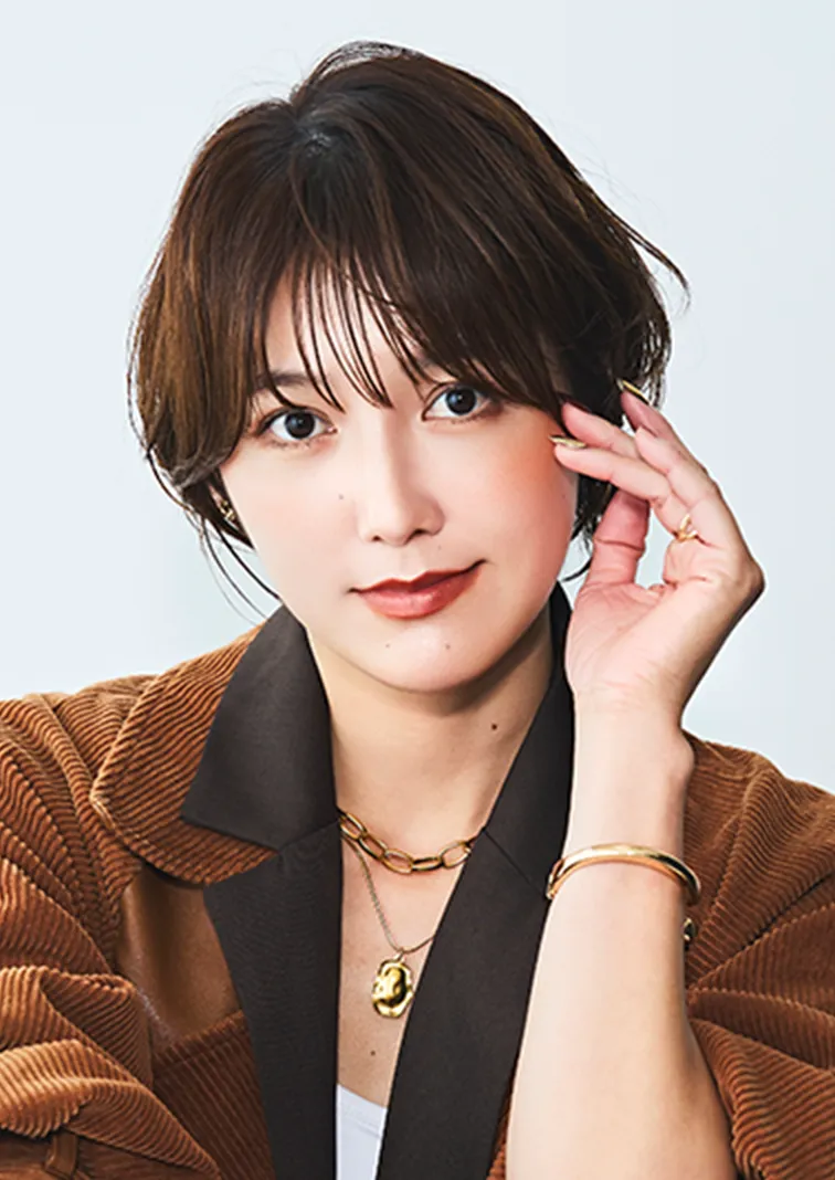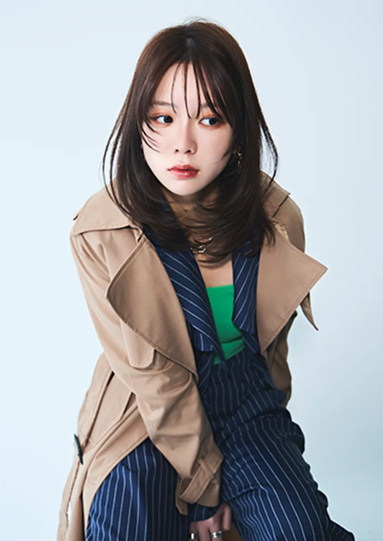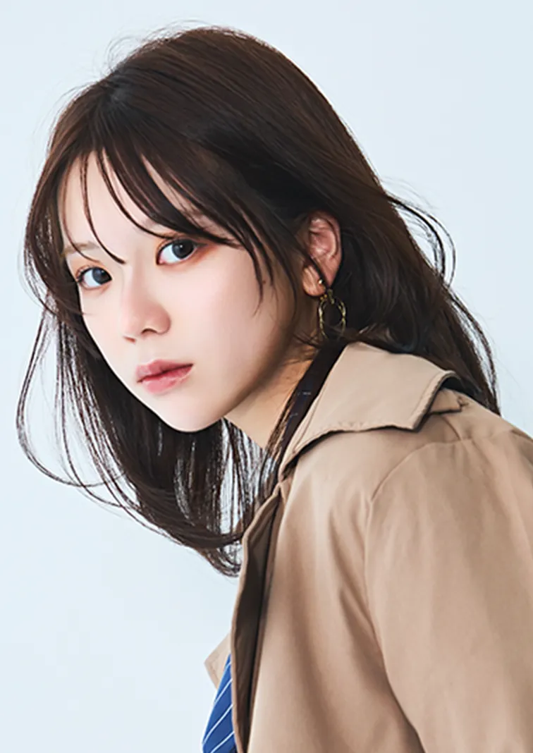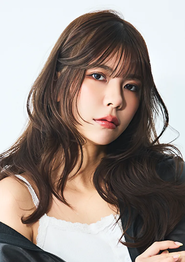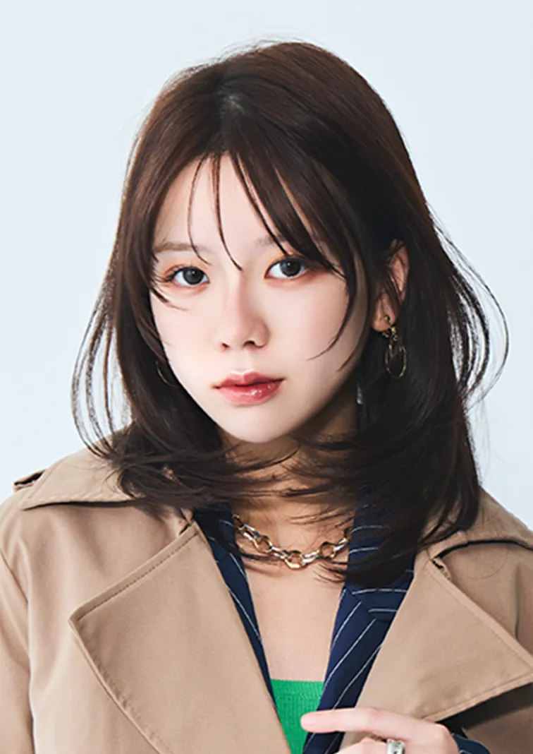 深みのある暖色系ヘアカラーがイエローベースの肌色を引き立たせる。